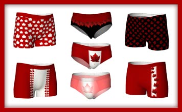 Canada underwear, sleepwear and Canada souvenir intimates collections. Browse online for Canada flag intimate apparel, Canada pajamas, socks and Canada underwear available. Fun Canada souvenir gifts, men's Canada flag boxer shorts, briefs, women's Canada souvenir briefs Canada thong and short-short panties Canadian varsity, gold medal Canada team socks and underwear, I love Canada Canada flag souvenirs custom Canada underwear & pajamas. |