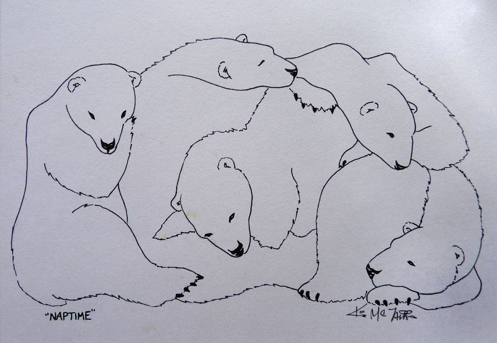 Polar Bears Nap Time 2 polar bear sketch pen & ink on paper 9" x 6" |