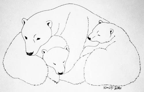 Polar Bear Nap Time Drawing Polar bear drawing mother & cubs pen & ink on paper 9" x 6" Polar Bear Nap Time Gifts & Prints Polar Bear Kiss Shirts |