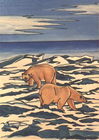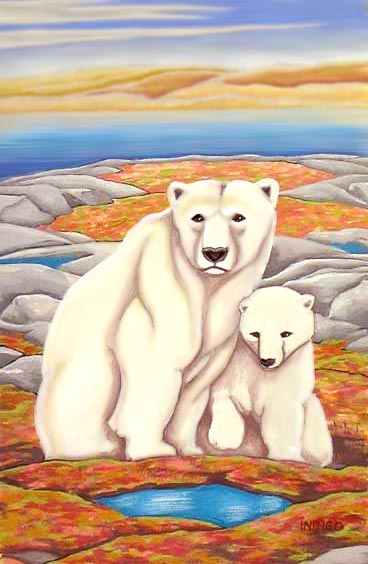 Mother & Cub Painting Polar Bear w. Cub painting watercolour on paper 16" x 20" |
